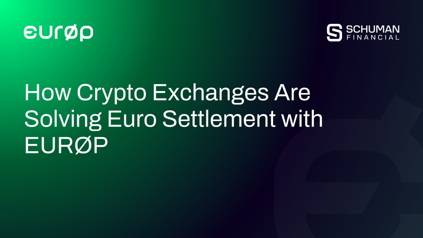 Schuman has deployed euro settlement infrastructure that exchanges integrate directly. The exchange handles compliance. Schuman provides the fiat banking rails and automated minting. The trader relationship and interface stay with the platform.